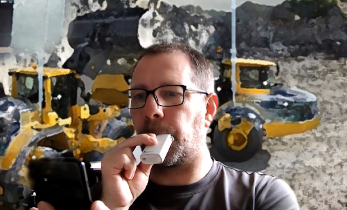 Mutta kun huuhtelin suuni ja odotin vartin saadakseni puhaltaa uudelleen, Previct Care -sovellus lähetti taas vihreän iloisen ukon.
